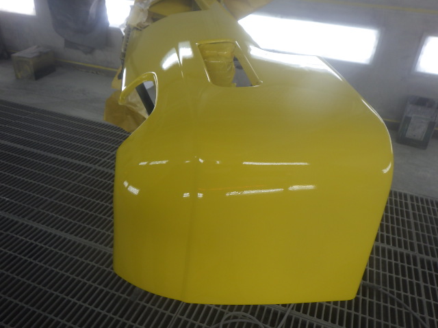 修正部分の塗料を調合し、塗装ブースの中でゴミやほこりに気を付けながら塗装をしていきます。