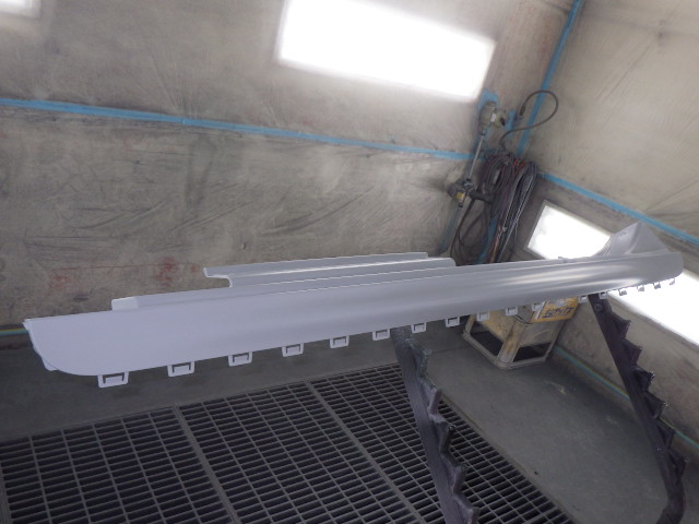 溶剤でしっかり脱脂した後、サフェーサーを塗装します。充分な加熱乾燥と冷却の後、今度は熟練した塗装職人の繊細な手の感覚を頼りに水研ぎを行い仕上げます。